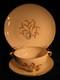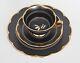 • English Tuscan China Tea Cup Set Cake Plates Hand Painted Raised Enamel Florals