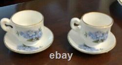 This is a 10-piece set of heirloom Fine Bone China featuring a floral pattern from Golden Crown, made in England. The set includes a minia tea cup and saucer set, teapot, creamer, sugar bowl, and other items. Suitable for hot or cold beverages, this hand-painted and decorated tea set is designed for 2 people, perfect for all occasions.