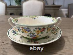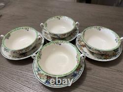 Set of 4 Wedgwood Etruria England Vintage Richborough Cream Soup Bowl & Saucer. 8 pcs total, 4 bowls, 4 saucers.