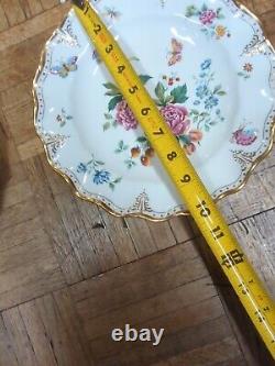 Add a touch of elegance to your dining experience with this stunning four-piece dinner plate set from Royal Crown Derby. The exquisite floral pattern and butterfly theme make these plates perfect for all occasions, whether it's a family dinner or a formal event. Crafted from high-quality porcelain and bone china, these plates are both durable and beautiful. The ruffle edge design adds a unique touch of sophistication and the printed backstamp ensures the originality of the set.