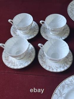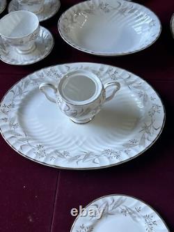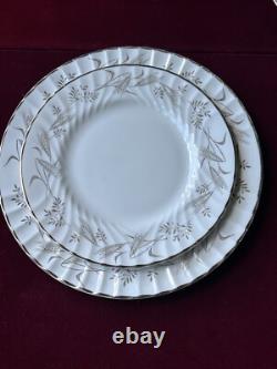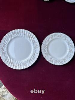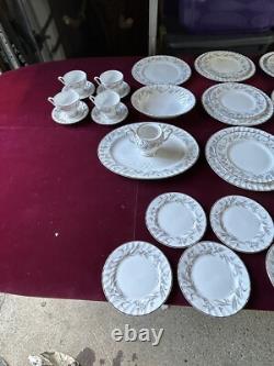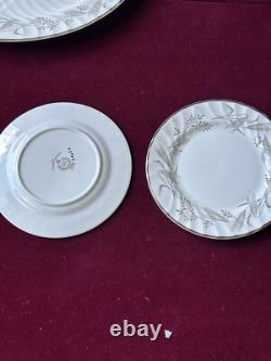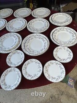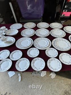 Set of 46 dinnerware one china. 12 bread and butter plates. There is a stain on both the dinner plates as well as a salad plate.