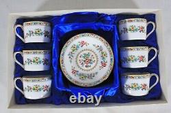 Dimensions: Saucer 5 5/8" Diameter 3/4" Height Cup 3 1/4" Diameter 4 1/4" Width 2 1/4" Height Box Dimensions 16 1/4" Length 10" Width 4" Height. Ming Rose Introduced 1970, Discontinued 1993. Don't miss this beautiful new rare Coalport set of 6 flat cups & saucers in its presentation box to give as a gift or to complete your collection. I have hundreds of unusual and discounted items.