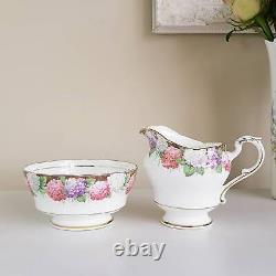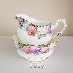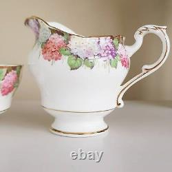 Paragon Hydrangea milk jug and sugar bowl. The set is in excellent vintage condition, with normal signs of wear and age. Measures: Milk jug:(large size) 10 cm / 3.9 inches tall.