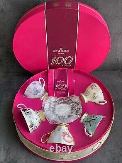 Royal Albert 100th Anniversary Bone China 10-Piece Cup & Saucer Set England. A stunning combination of bold and bright designs to make any afternoon tea perfectly vintage makes the 100 Years Of Royal Albert collection effortlessly timeless. Each piece in the collection is decorated using a pattern and design representing some of the most iconic styles and colors of each decade. Lovingly packaged in a beautiful Royal Albert presentation box.