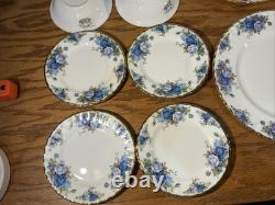 This is a brand new set of Royal Albert moonlight rose China Service for four people each place said comes with five pieces, includes items as followed. 4 dinner plates 10 1/4 inches.