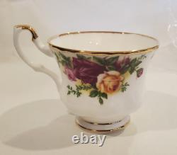 Royal Albert OLD COUNTRY ROSES 12 Pc Dinnerware Set Dinner Plates Teacups and Saucers. This twelve piece set includes: four (10" diameter) dinner plates, four teacups (3 3/8" diameter) and four saucers (5 diameter).