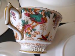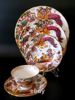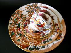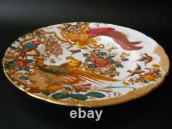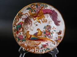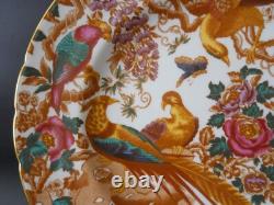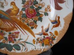 Royal Crown Derby Porcelain fine china made in England. The pattern is Olde Avesbury A73 in the Ely Chelsea shape. Hand painted multi color flowers and pheasant birds in shades of gold tones, pinks & purples, a deep emerald green over a white background. Scallop rim trimmed in gold. I will be listing many more pieces of this pattern.