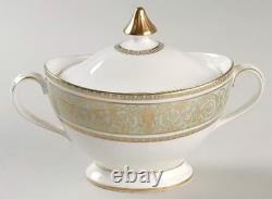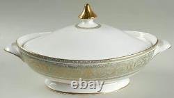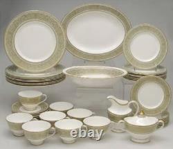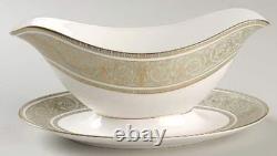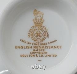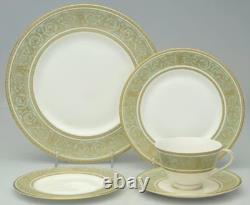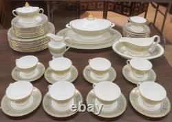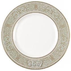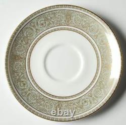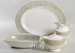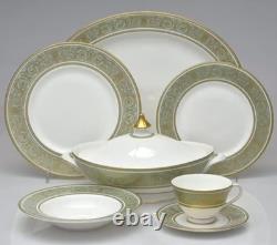Gold Scrolls On Green Rim, Gold Trim. The Royal Doulton English Renaissance 67 Piece Bone China Dinner Set is a vintage and elegant collection perfect for all occasions.