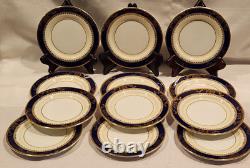 ROYAL GRAFTON VICEROY COBALT & GOLD BREAD BUTTER PLATES SET OF 12. BONE CHINA MADE IN ENGLAND. GREAT USED CONDITION NO CHIP NO CRACK NO CRAZING.