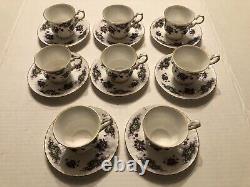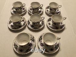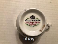 Set of 8 royal windsor fine bone china tea cup and saucer set. This set was used one time, still looking brand new. Tea cup height: 2 1/4.