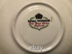 ROYAL WINDSOR fine bone china tea cup & saucer set of 8 Made in England gold rim