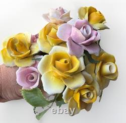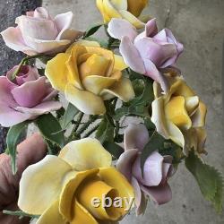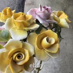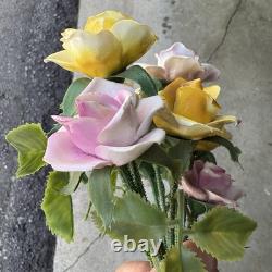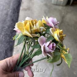 Add a touch of vintage charm to your home decor with this set of 10 beautiful figurines. These figurines feature exquisite floral patterns with yellow and pink roses, made of fine bone china with plastic stems. They are perfect for all occasions and will make a great addition to any collection.