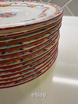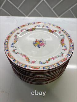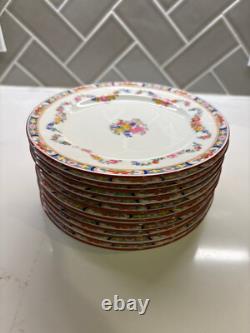 Set of 12 antique Minton Rose 7.5 hand-painted bone china salad plates (can also be used as dessert plates). The back of each plate has the globe mark and is numbered.