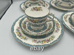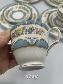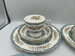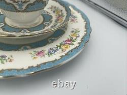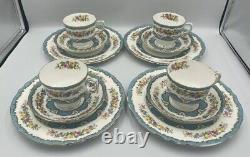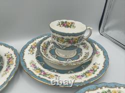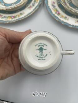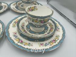 Set Of 4 Crown Staffordshire China Lyric Tunis Blue Tea Cup Saucer Salad Plate