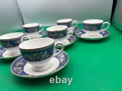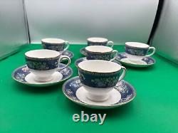 Set of 6 Wedgwood Bone China BLUE SIAM Cup & Saucer Sets England