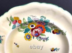 Beautiful set of 8 vintage Mason's Patent Ironstone China plates, Minuet Pattern, made in England. Lovely hand-painted floral design with vibrant colors and green trim. Visible age-related crazing typical for this pattern and age (circa mid-1800s).