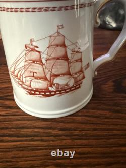 Spode China Trade Winds Red Gold Set 9 Mugs Tankards