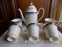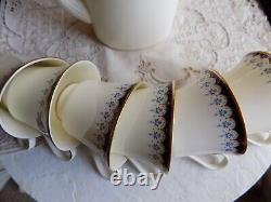VINTAGE MINTON ENGLAND BONE CHINA CONSORT SET-COFFEE TEA POT and 6 FOOTED CUPS