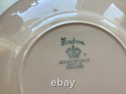 An EXCELLENT 12 piece vintage set "ROSEDAWN" by Johnson Bros in England. Our family is the original owner of this set which includes: covered plate, bowl, plate, egg cup, small plate, cup and saucer, tea/coffee pot with lid, creamer and sugar dishes.