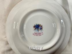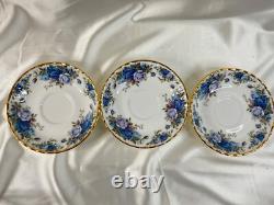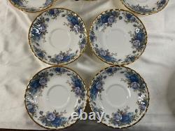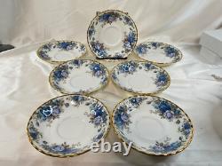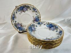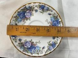This set of 7 vintage Royal Albert Moonlight Rose saucers is a beautiful addition to any tea collection. Made of fine bone china in England, these round saucers feature a delicate blue Moonlight Rose pattern. With a diameter of 5.5 inches, they are perfect for serving tea in style. The vintage nature of these pieces adds a touch of nostalgia to your table setting, making them a unique and decorative piece for any tea lover.