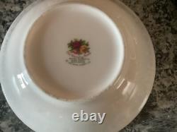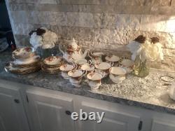 This Vintage Royal Albert Old Country Roses 32 Piece Dinner Set is a charming and decorative addition to any table setting. Made in England in 1962, this set features a floral pattern in vibrant multicolor, perfect for all occasions. Crafted from bone china with a glossy finish, each piece is handmade with a chintz production style. The set includes tennis snack plates and teacups, showcasing the Victorian style and vintage charm associated with the Royal Albert brand. Ideal for teens and unisex adults, this set is sure to add a touch of elegance to any dining experience with its intricate design and intricate detailing.