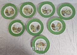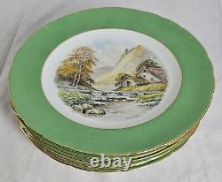 Vintage Set of Eight (8) Royal Crown Derby Scenic Plates c. 1942