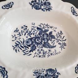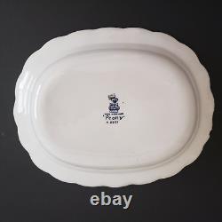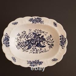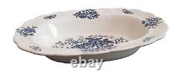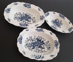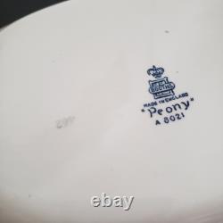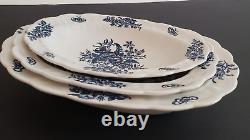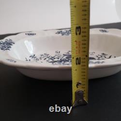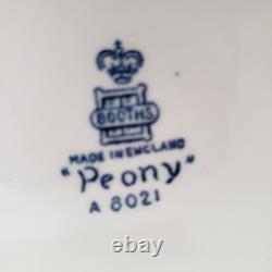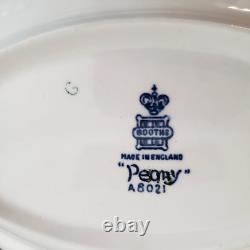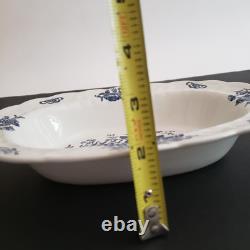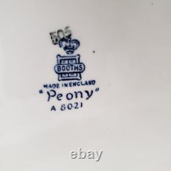 Vtg Booths Peony Blue White England Oval Vegetable Dishes Set of 3 A8021. This antique set from Booths features three oval vegetable dishes in a Peony pattern, made of blue and white Bone China. Each dish varies in length from 8 to 10 inches. The antique dishes are stackable and bear the glossy finish typical of the early 20th-century era. This set, originating from England, adds an elegant touch to any occasion with its 1920s style.