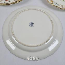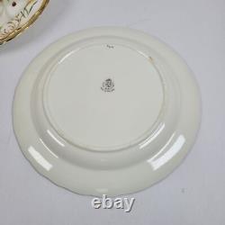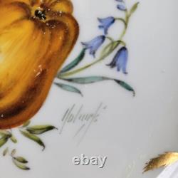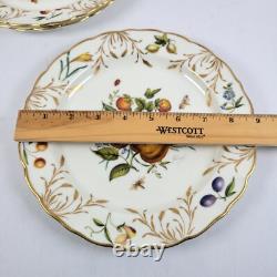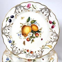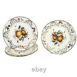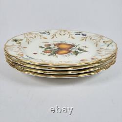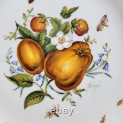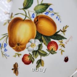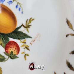 Elegant set of four vintage Royal Worcester bone china plates featuring fruit, bugs and floral design, 3 of the plates signed by E. Townsend most likely from 1940. The other similar plate which has some very minor differences is signed as well and most likely from the 1950s.