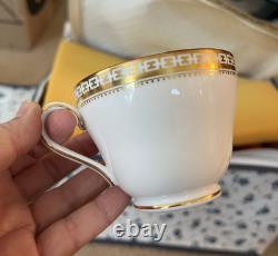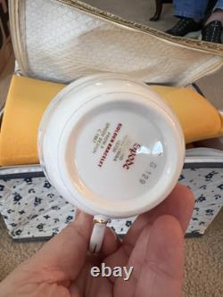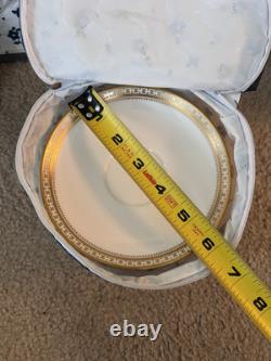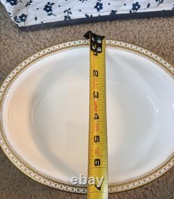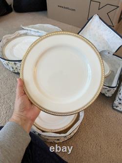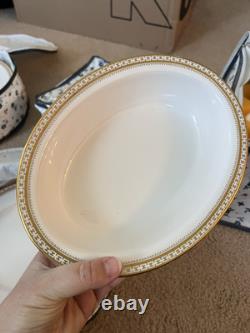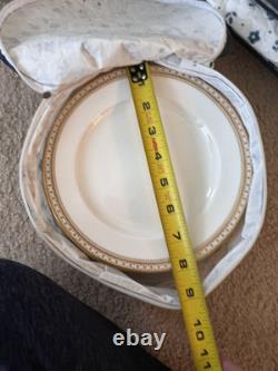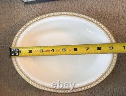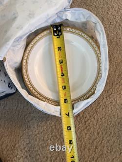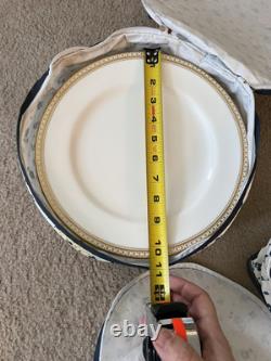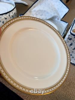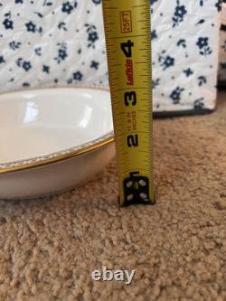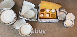 This set is in great condition. There are know known chips or cracks. There is a total of 62 pieces. There are 12 each 10.5" dinner plates, 8" salad plates, 6.25" dessert plates, 5.5" saucers, tea cups, and 2 serving dishes about 9.25x7. Please feel free to reach out if you have any questions.