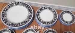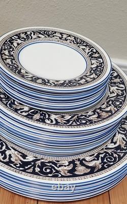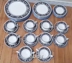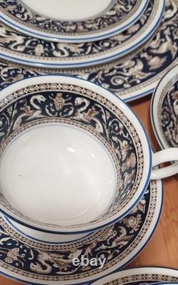 Wedgwood Bone China Florentine Dark Blue Service for seven- 44pc Set