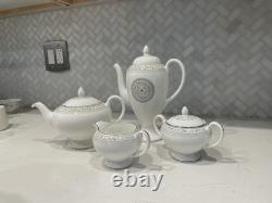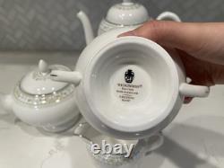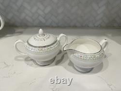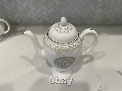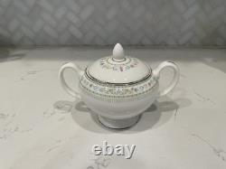 1 Sugar bowl with lid. Made of fine bone china, this set features the delicate and intricate "Griffons" pattern (R4587), with pastel floral motifs and gold-tone rim detailing. A rare and timeless pattern produced in England by Wedgwood. Overall excellent vintage condition (shown in photo).