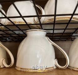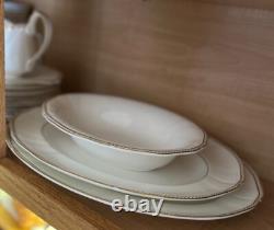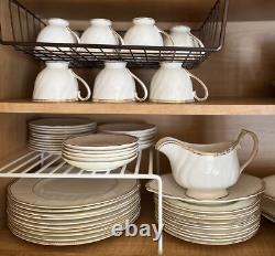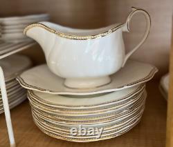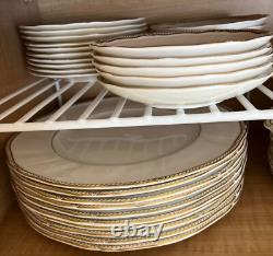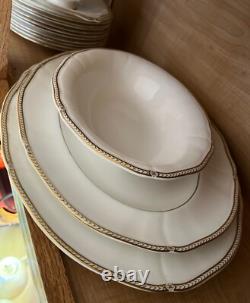 This 55-piece set features a luxurious ivory base accented with regal gold trim, embodying Wedgwood's renowned tradition of refinement. Ideal for formal dining, entertaining, or special celebrations, it offers full service for 10 plus essential serving pieces -rarely found complete and in such exceptional condition. 55 Pieces Total - Includes full service for 10 plus 5 coordinating serving pieces. Timeless Design - Ivory bone china with rich gold detailing.